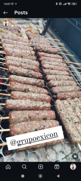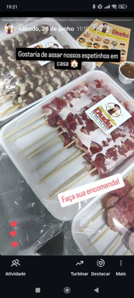 ESPETINHOS DO CARDÁPIO: FILÉ ANGUS - FILÉ COM QUEIJO - CORAÇÃO - MISTO - LINGUIÇA - FRANGO - PÃO TEMPERADO