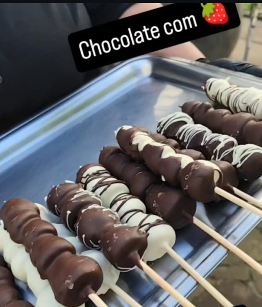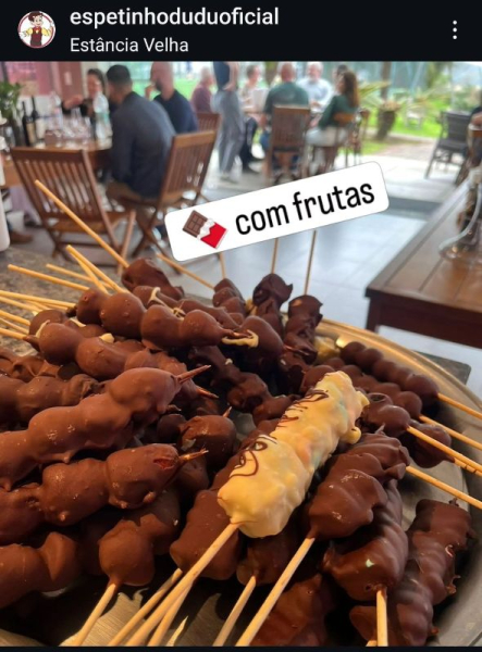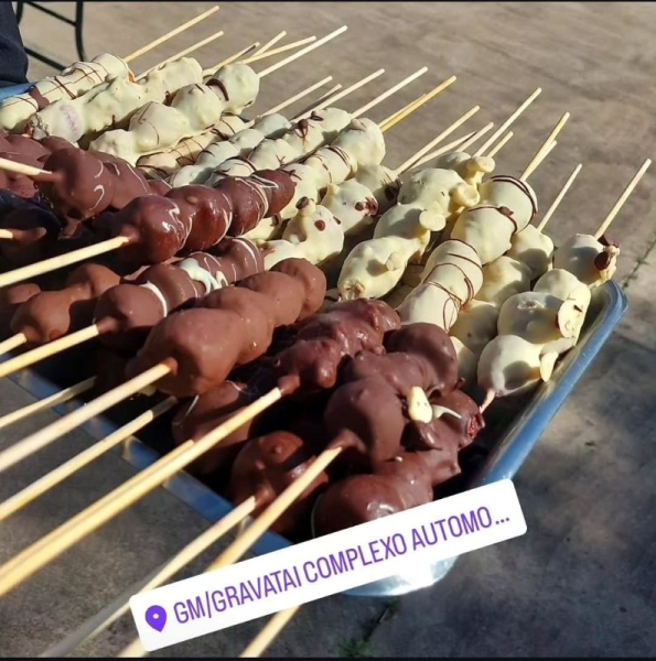 ESCOLHA DOCES: MORANGO - BANANA - UVA - MARSHMALLOW (ENVOLVIDOS POR UMA DELICIOSA COBERTURA DE CHOCOLATE).