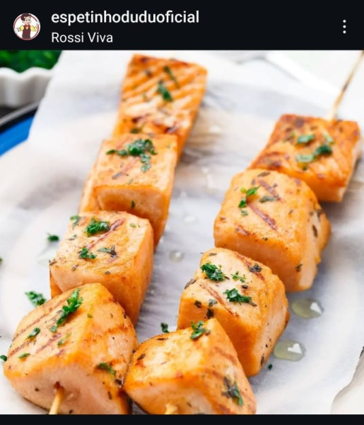 ESPETINHOS DE FRUTOS DO MAR: CAMARÃO - SALMÃO.