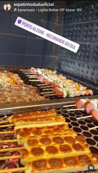 7 SABORES DE ESPETINHOS TRADICIONAIS : FRANGO C/ QUEIJO - LINGUIÇA - QUEIJO COALHO - CORAÇÃO - KAFTA - XIXO - PÃO TEMPERADO.