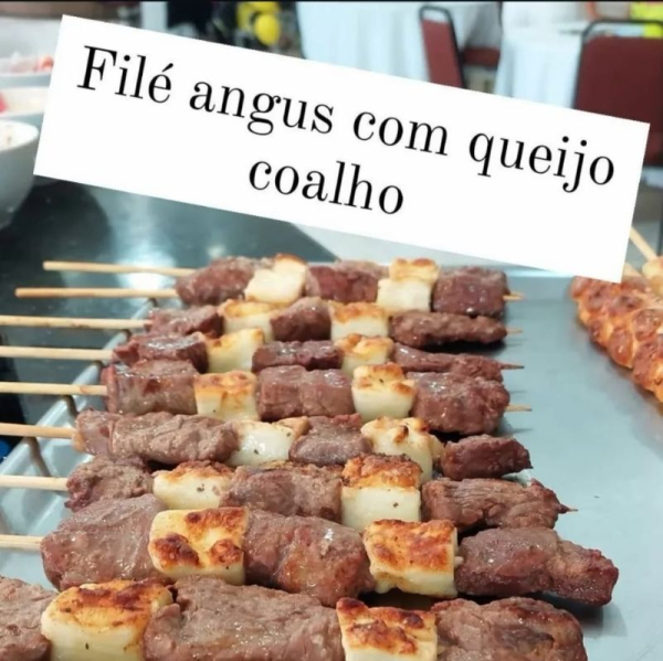 4 SABORES DE ESPETINHOS DE CARNE BOVINA : FILÉ ANGUS - FILÉ ANGUS C/ QUEIJO - FILÉ ANGUS C/ BACON - ALCATRA ANGUS