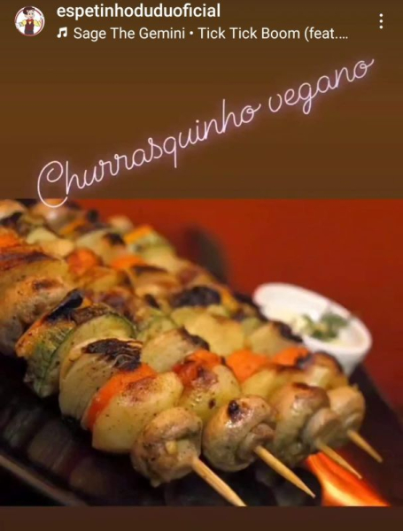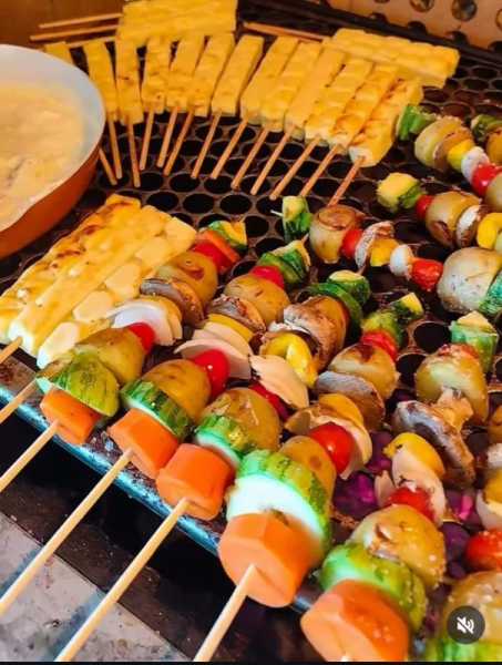 ESPETINHO VEGETARIANO: CENOURA, BATATA BOLINHA, ABOBRINHA, COGUMELO - TOMATE CEREJA E PIMENTÕES.